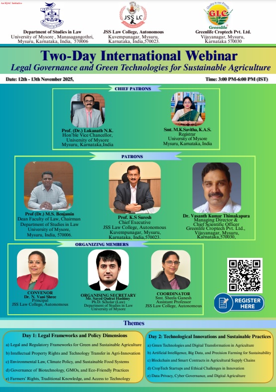 JSS Law College (Autonomous), Mysuru, in collaboration with CEERA, NLSIU Bengaluru, and the Department of Justice, proudly hosts the 4th Edition of the Prof. V. S. Mallar Memorial Legal Aid Competition (2025–26).